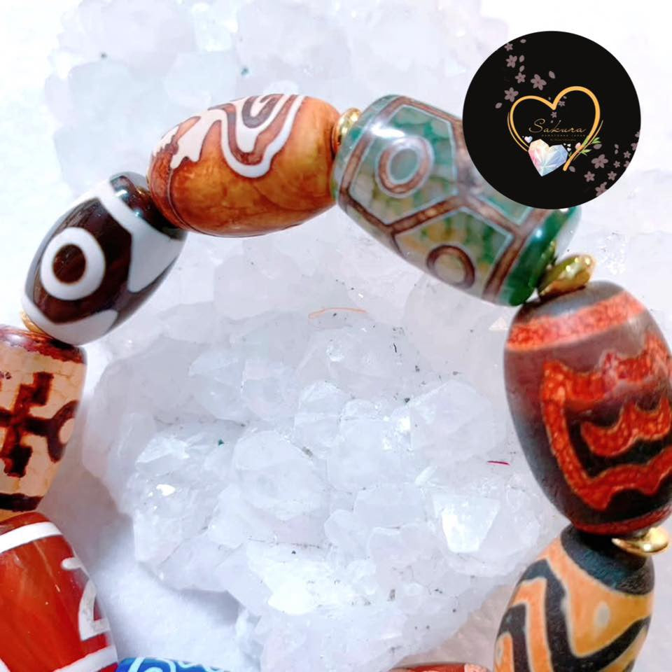 Dzi beads “ eyes “ are symbolic, seen as “ window’s of the soul “ that facilitate positive energy flow offering protection and harmony.