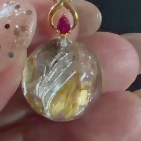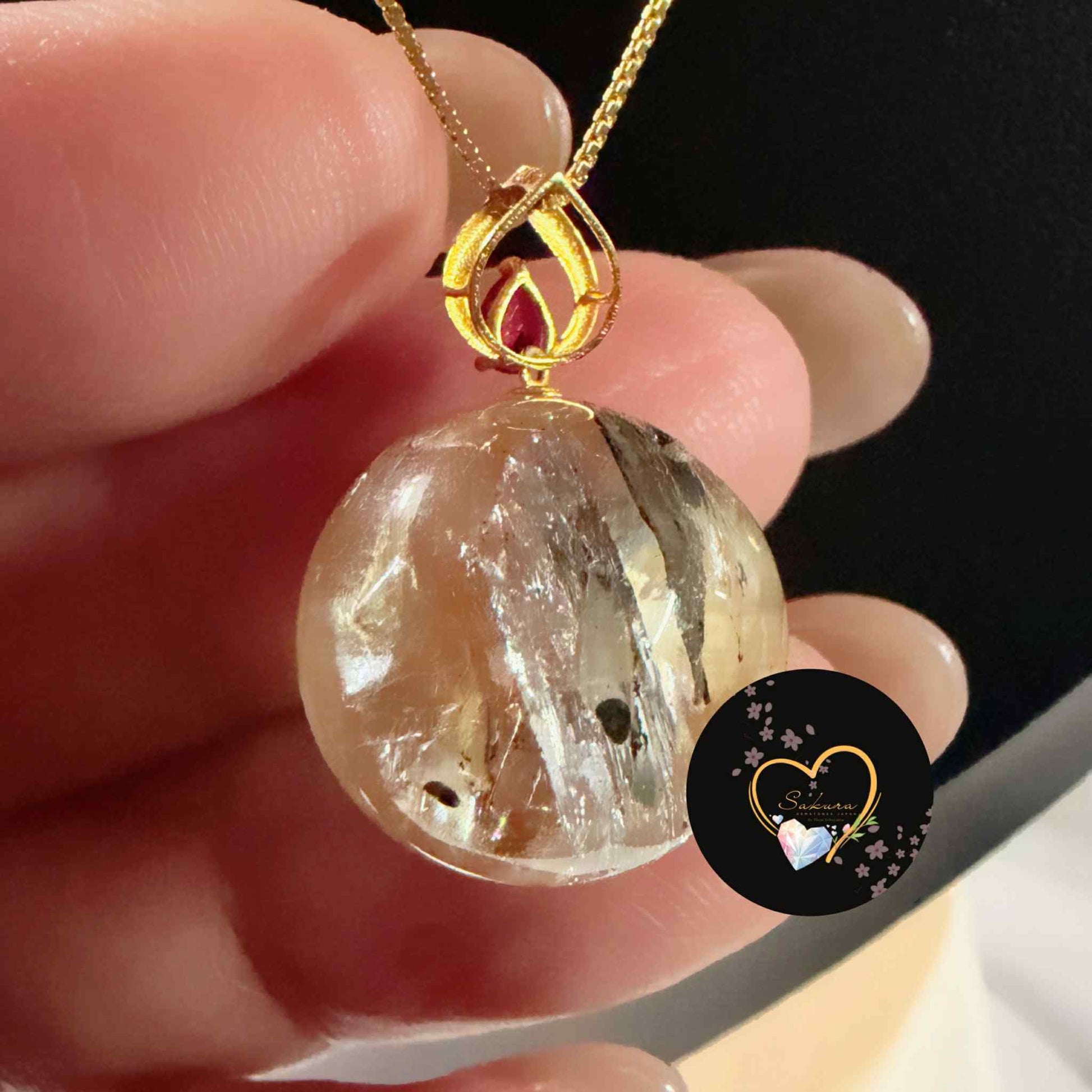 G18K Solid Gold Genuine Elestial Quartz Necklace Pendant