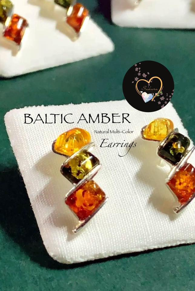 Natural Multi-Color BALTIC AMBER Earrings s925