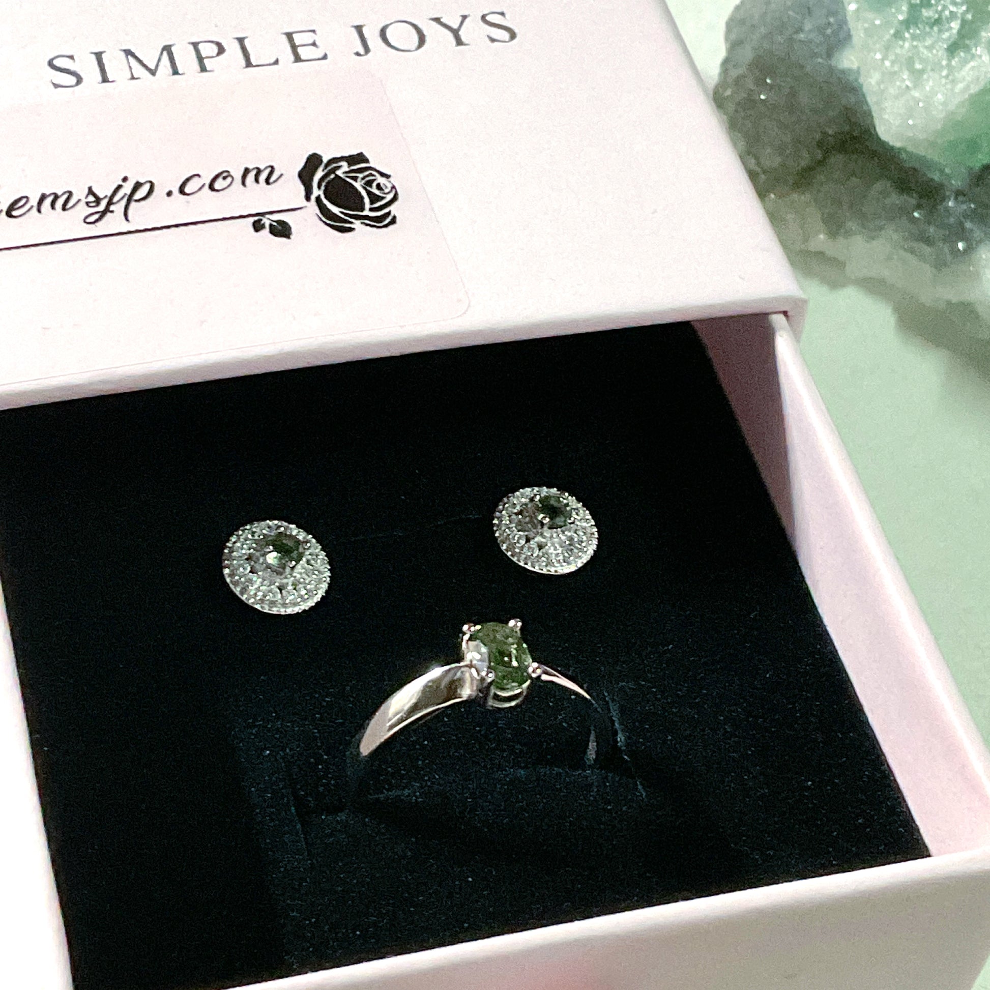 Natural MOLDAVITE s925 settings Ring + Earrings