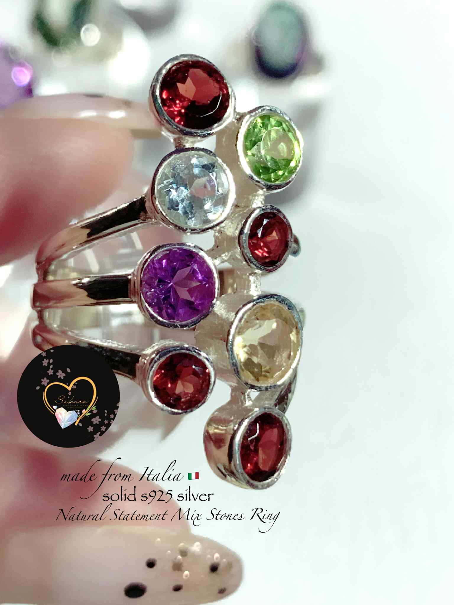 s925 Silver Statement MIX Colors Gemstones Ring