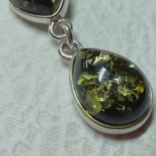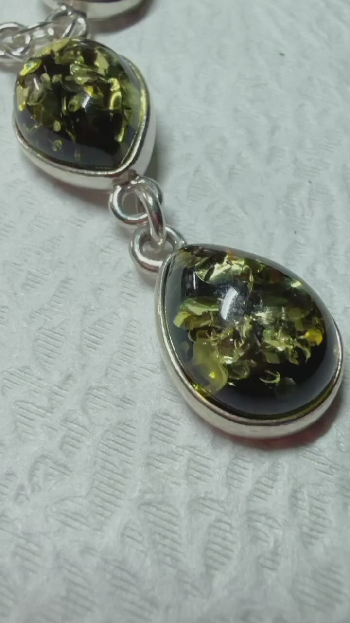 Solid s925 Silver Natural BALTIC Green Amber Necklace